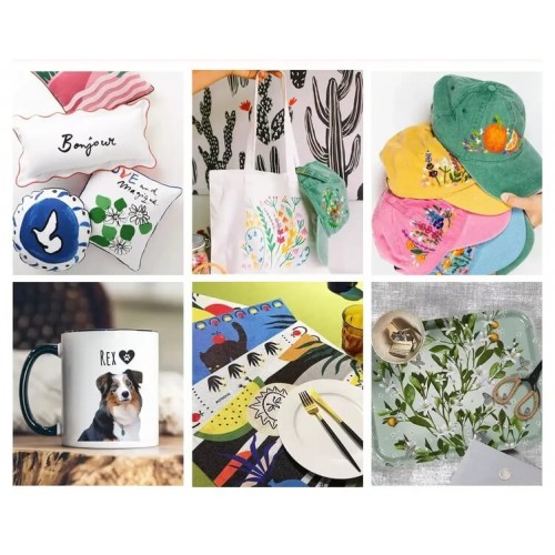 Hartia de sublimare va ajuta sa personalizati prin imprimare tricouri, bluze, fete de perne, lenjerie, cani, farfurii, puzzle-uri, brichete, obiecte din metal, sticla, ceramica, etc. Sublimarea pe materiale textile implica folosirea obligatorie a tesaturilor cu fibra sintetica (nu pe bumbac, in sau canepa !!!) . Puteti personaliza cadouri de dimensiuni medii sau mici (suprafata maxima ce poate fi printata este A4, egala cu suprafata foii de transfer termic prin sublimare), imprima trofee sau echipamente sportive textile pentru cluburi sportive, sau companii, obiecte promotionale pentru agentii de publicitate sau suveniruri pentru piata turistica.