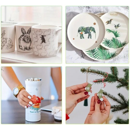 – suprafete ceramice tratate in prealabil cu un strat de poliester (cani sau placi ceramice, substraturi dure acoperite cu poliester, sticla, fibra de sticla, mouse pad-uri etc);